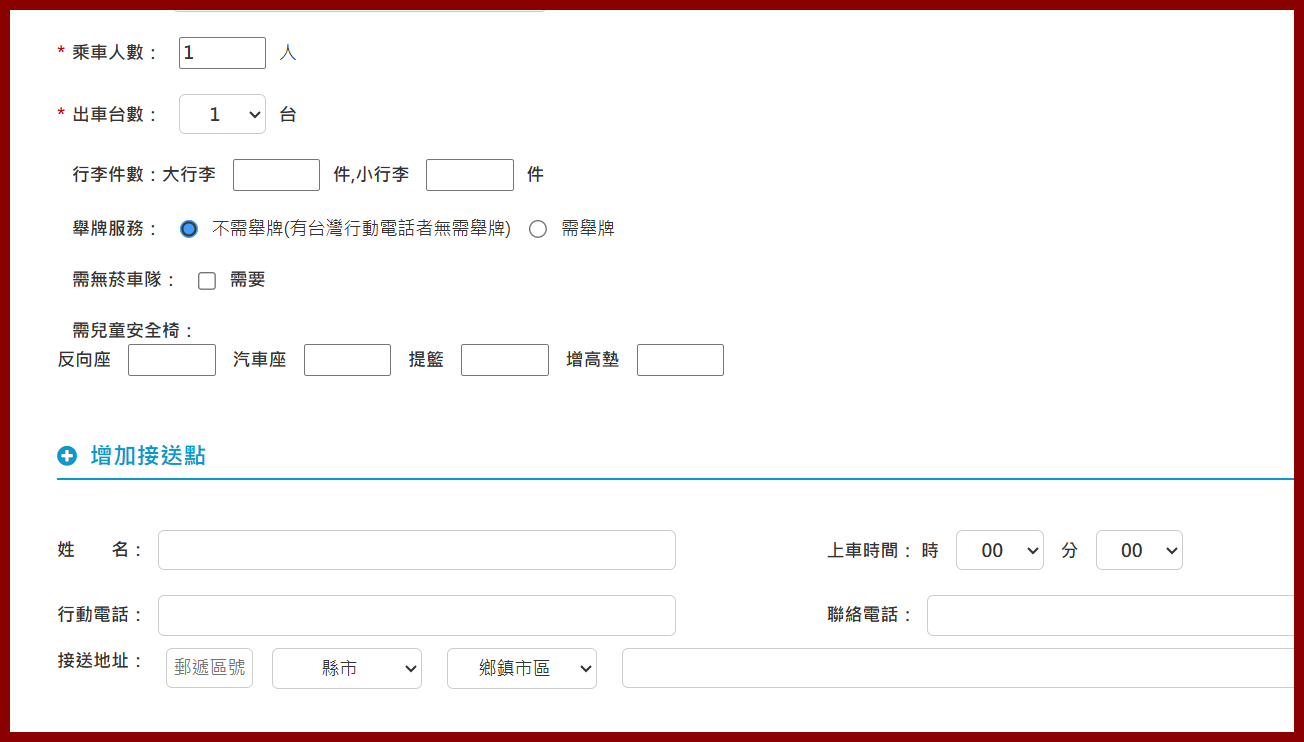 另外如果需要兒童座椅也都是完全沒問題,甚至朋友住不同地方,也可增加接送點