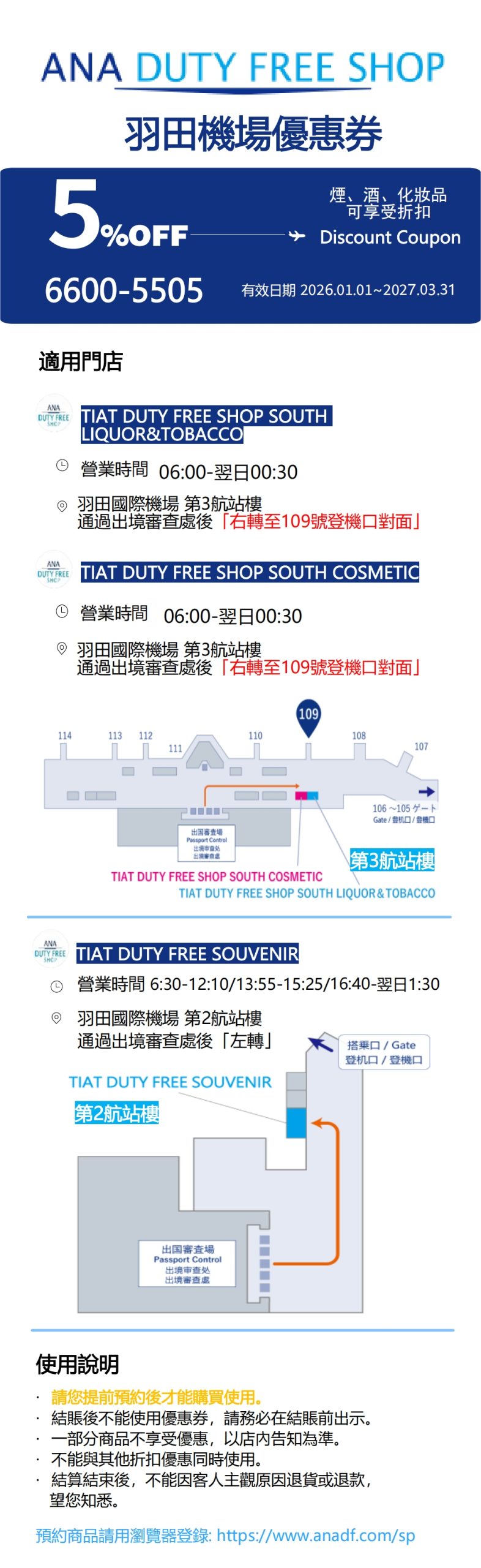 這邊旅人也同時提供羽田機場第二航廈和第三航廈的免稅店優惠券