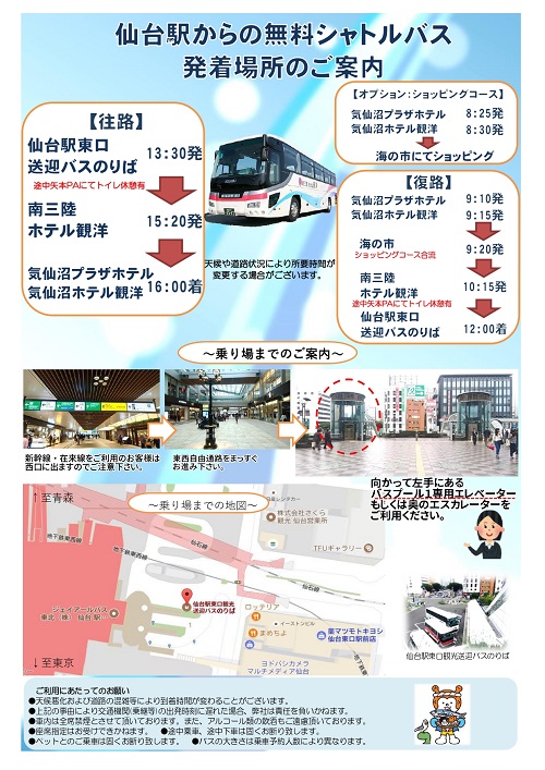 沒錯是有免費接駁巴士,直接仙台站東口就有接駁巴士,但是需要提早預約