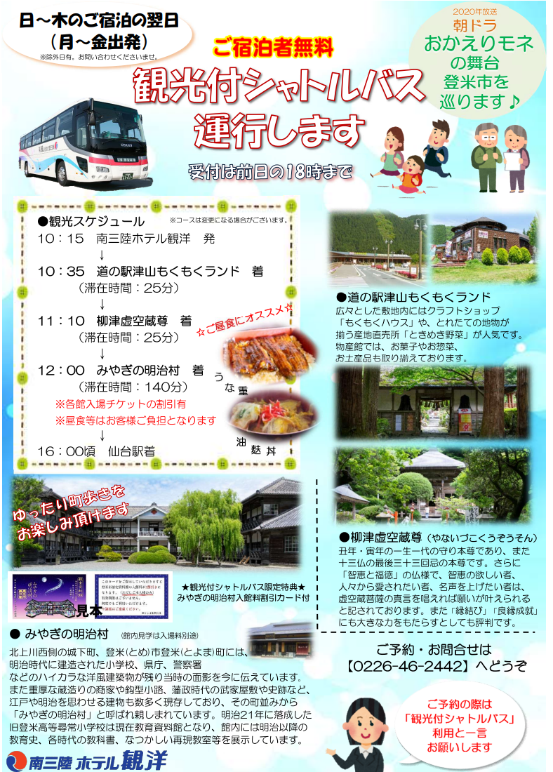 也有接駁到南三陸地區的合作旅館,可見旅館也是下了大手筆阿