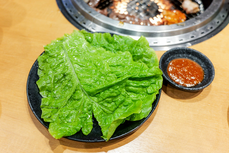 也有生菜+韓式醬可以包肉一起來吃,讓你吃燒肉完全沒罪惡感